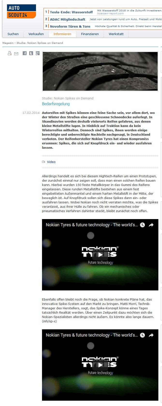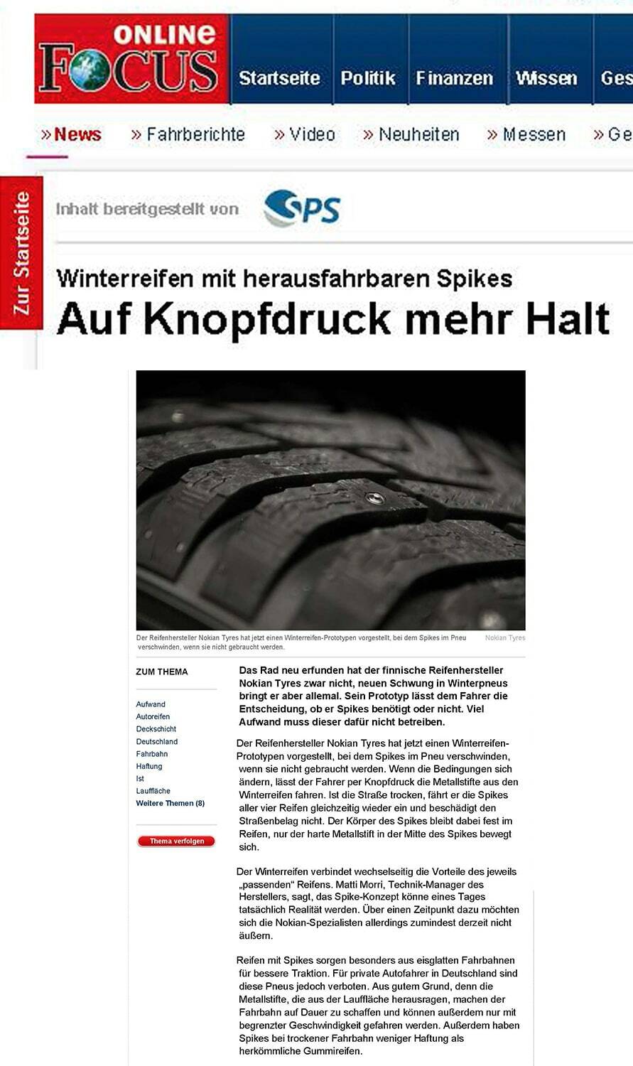 Als Innovationsführer präsentierte Nokian Tyres den ersten Nicht-Spike-Winterreifen der Welt mit Spikes, die auf Knopfdruck ausfahren, damit der Reifen besser greift. Dafür entwickelten wir die Botschaft „Erster Nicht-Spike-Winterreifen der Welt mit Spikes“, was ein überwältigendes Medien-Echo brachte.