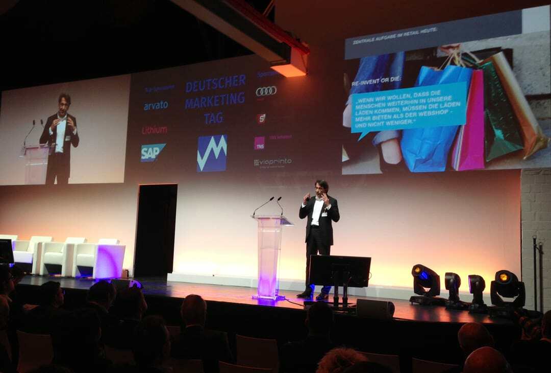 Dr. Wolfgang Merkle, Tchibo Director Corporate Marketing, propagierte die Vernetzung von Ecommerce und stationärem Point of Sale und zeigte dazu innovative Beispiele. Per Digital Screen auf der Fashion Show bestellen die Kundinnen sofort und lassen sich die gerade gesehenen Kleider nach Hause liefern.