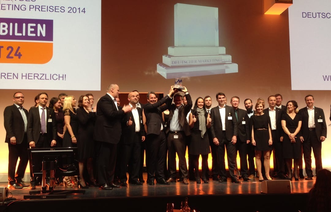 Der Deutsche Marketing Preis 2014 ging an Immobilien-Scout24 für seine ganzheitliche Marketingleistung. „ImmobilienScout24 ist eine starke Marke und klarer Marktführer in Deutschland rund um das Thema Immobilien. Seit Beginn im Jahr 1998 ist das Unternehmen ein stetig wachsender Trendsetter und Innovator“, erläuterte Prof. Dr. Ralf Strauß, der als Vorsitzender der 23-köpfigen Fachjury die Einreichungen zum Deutschen Marketing Preis begutachtet hat. „Wir zeichnen ImmobilienScout24 aus, weil der Preisträger im Marketing und in der Produktentwicklung zusammen intensiv entlang der Customer Journey arbeitet. Dieses strukturierte Vorgehen lässt sich über alle Marketing-Disziplinen hinweg beobachten. Innovative Kampagnen und Produkte werden über alle Kanäle und geräteübergreifend integriert, um ein umfassendes und zielgruppenspezifisches Serviceportfolio aufzubauen. Messbar erfolgreiche Kampagnen werden dabei inhouse mit den marketingrelevanten Abteilungen kreiert.“