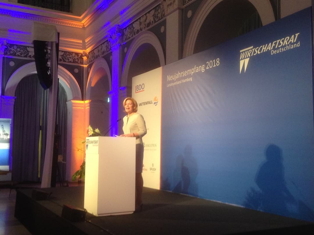 Von Dr. Falk Köhler Text + Fotos / Die Wirtschaft soll sich engagiert für Ihre Interessen einsetzen. Wir brauchen ein positiveres Unternehmerbild. Julia Klöckner, MdL, CDU Landes- und Fraktionsvorsitzende Rheinland-Pfalz, Stellvertretende CDU Bundesvorsitzende, forderte das beim Neujahrsempfang vom Wirtschaftsrat der CDU Landesverband Hamburg im schönen Börsensaal der Handelskammer Hamburg. #wrat.